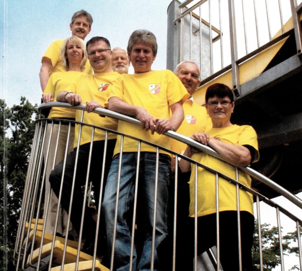 Vorn von links Vorsitzender Stefan Schmid, Frauenwartin Sieglinde Keim, Sportwartin Petra Pfaff,