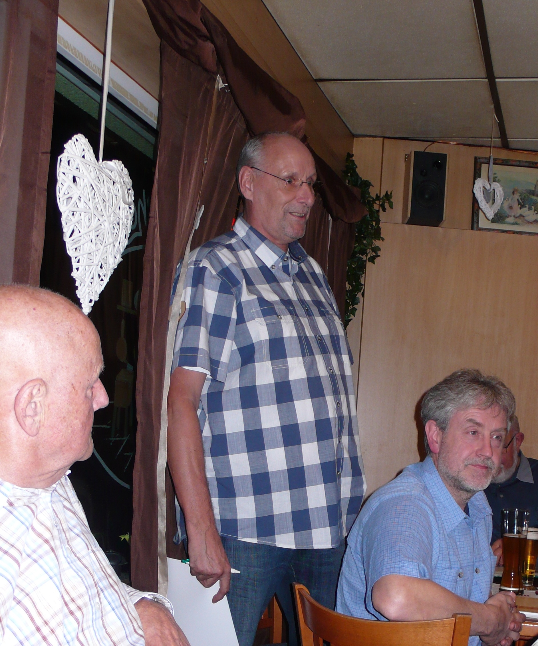 Organisator Peter Pfaff berüßt die Teilnehmer, im Vordergrund Adolf Kraft und der 1. Vorsitzende Stefan Schmid